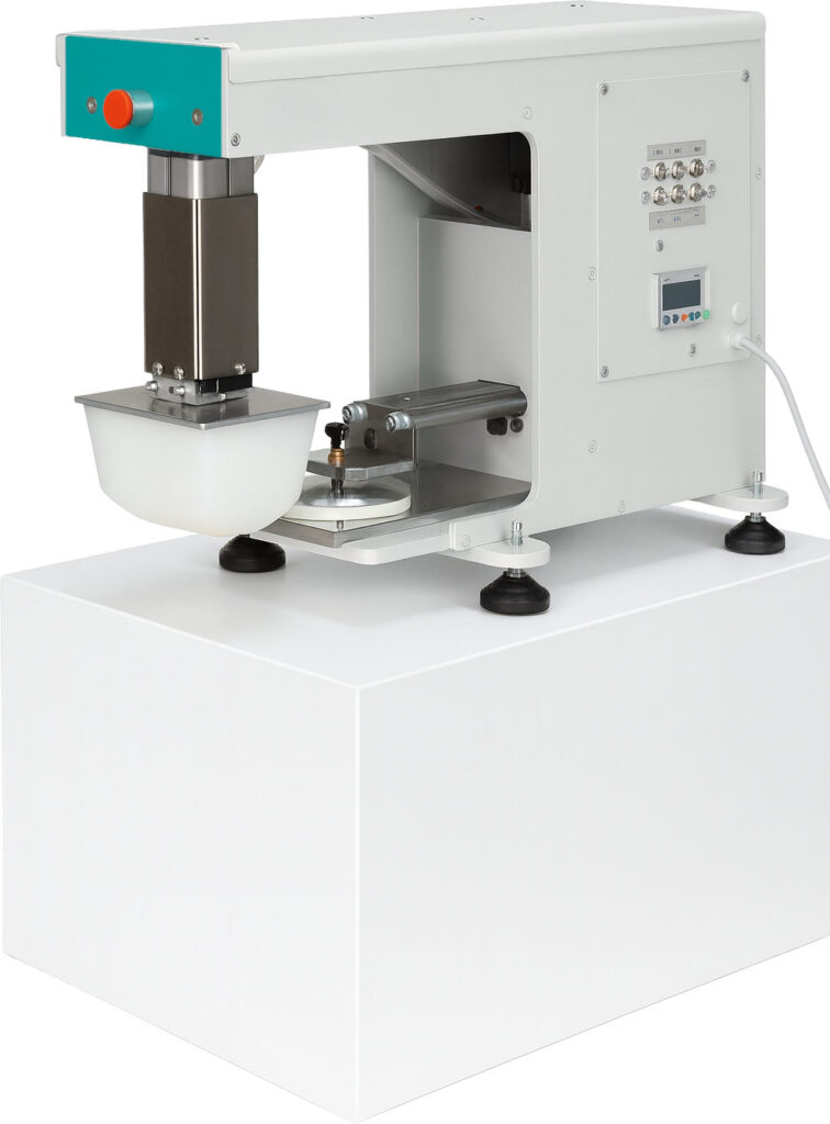 Półautomat do druku tamponowego w 1 kolorze z zamkniętym systemem farbowym, który minimalizuje parowanie substancji lotnych, zapewnia przez to stałość parametrów farby i zmniejsza zagrożenia środowiskowe.
